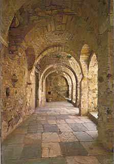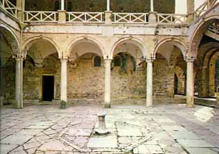 Antiguo palacio Episcopal, construído en 1754. Desde 1951 se convirtió en el Museo de Mistra, y con ocasión de la exposición Momentos de Bizancio se ha remodelado y reorganizado por completo bajo el tema Bizancio y Occidente: la experiencia de un centro urbano tardobizantino. |