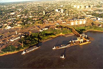 de um porto fluvial, em frente aos rochedos da cachoeira de Santo Antônio,