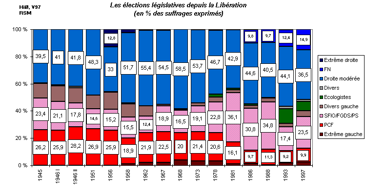 [Pour la IVe République, les chiffres concernent la seule métropole. Pour la Ve, l'outre-mer est inclus]