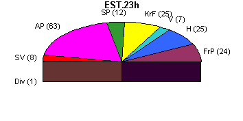 SV 5,3 (8) - SP 8,2 (12) - KrF 13,3 (24) - V 4,4 (6) - H 12,8 (19) - FrP
