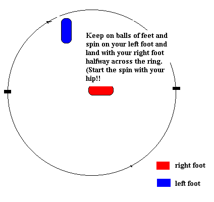 | Basic Objectives To throw the discus as far as possible using a sidearm throw that can be executed from a standing or spinning position. Rules The throw must begin inside the ring and also end inside the ring. Click here to see an illustration of a discus ring. Any infractions are called "fouls." You must enter and exit from the back of the ring. Basic Techniques of Throwing Holding the Discus Imagine that the discus is a clock face and hold it out from your waist with your left hand. Put your right index finger a little past where twelve would be on a clock face. Rest your thumb and your other fingers comfortably on the discus. The index finger should be over the edge of the discus. The thumb does not have to be. Click here to see an illustration. Standing Position Stand with your feet about shoulder width apart or whatever is comfortable. Click here to see foot placement. Bend your knees and get down as low as you can without bending your back. Throwing the Discus Twist your upper body around so that you are at least facing the back of the ring. (Your lower body should be in the same position as in the previous section.) Still keeping your upper body back, drive your legs and then your hips into the throw. Your abdomen should come next, followed by your left shoulder. Your left arm should be rigid and should lead your right shoulder followed by your right arm and the discus. The discus should come off of your index finger and out of the front of the hand. The important thing to remember is that this throw is a full body throw, not just an arm throw. The Spin With the spin, you do the same as you did for the standing throw, only you add a simple spin before it. Your foot movement should go in the path of a backwards seven. Click here for an illustration. The spin should begin at the back of the ring with your body facing the back of the ring. Click here to see foot placement. Twist the body so that the upper body is facing the right side of the ring. (Your right.) Spin on your left foot, leading with your hip and not your left shoulder, and land on your right foot. Click here to see an illustration. Spin on your right foot and land with your left foot so that you are in the standing position. (Also called "Power Position") Proceed with the steps listed above. |