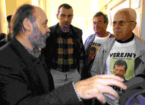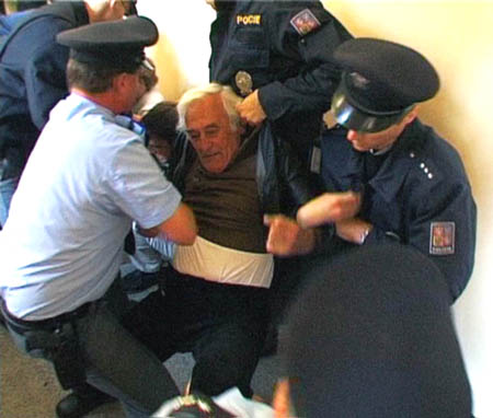 Z www.tiscali.cz:![]() brutalita policie a soudní stráže vůči poklidné veřejnosti dožadující se v Přerově 6. 10. 2004 pro pana Hučína veřejného procesu - práva zaručeného m.j. Listinou základních práv a svobod (klikněte na obrázek pro další) |
