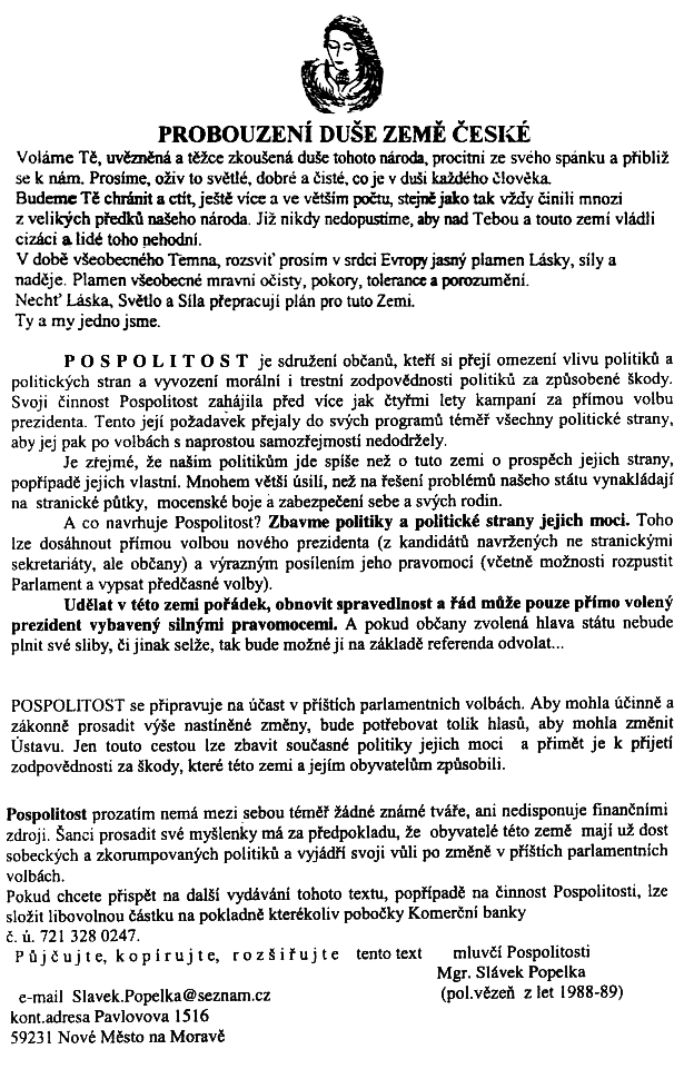 Proto se my, níže podepsaní občané České republiky, na Vás obracíme s žádostí o zvážení následujících faktů a odmítnutí celonárodního referenda v této zásadní otázce.