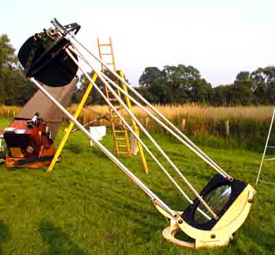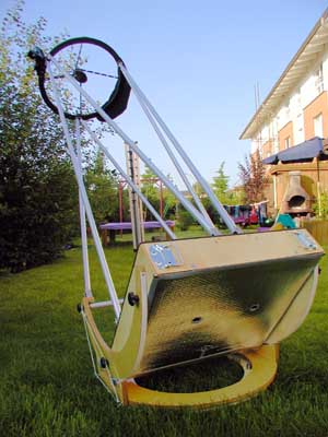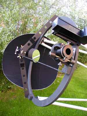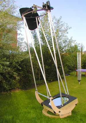Die Spiegelbox wird hochkant gelagert und auch transportiert (hinterm Beifahrersitz). Das Instrument lässt sich bequem in einem Kleinwagen verstauen. Nach der Beseitigung von ein paar Kinderkrankheiten funktionieren alle Komponenten nahezu perfekt. Die 6 Stangenkonstruktion hat sich als ausreichend stabil erwiesen. Die Optik bringt mehr als ich erwartet hätte.