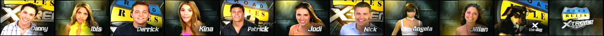 | Mini-Guide Episode #1 :Mission: Volcano Bungee- Bungee jump from a helicoptor over an active volcano Location: Billerica Volcano in Pucon, Chile Mission Accomplished Episode #2: Mission: Waterfall Rappel - To rappel down a 210 foot waterfall in pairs Location: Puma Waterfall in Pucon, Chile Mission Accomplished Episode #3: Mission: Living Art - To stand in a store window naked while covered in body paint forming the Road Rules: X-tream logo. Location: Puma Store in Santiago, Chile Mission Accomplished Episode #4: Mission: "Don't Have a Cow" - To eat cow eyes, brains, tongue, testicles, rectum, among other disgusting things in 5 minutes. Location: Sepia Restaurant in Santiago, Chile Mission Failed Episode #5 Mission: "Hold On"- To ride in a stunt place doing flips while having to draw clues which a puzzle solver will use to find the X-treme key. Location: Aero Club de Santiago in Santiago, Chile Mission Accomplished Bonus: An all expensed paid trip to 17 different european countries. Episode #6: Mission: "Blind Driving"- Successfully drive a dune buggy around a course (in pairs) while the passenger wears a blindfold and must be in control of the break and gas. Location: Andres Munos Catillo Race Track in Calama, Chile Mission Failed Voted Off- Danny Episode #7: Mission: Go Fetch - To retrieve items from inside of a dog house being protected by trained attack dogs Location: Escueala de Adiestramiento in Santiago, Chile Mission Accomplished New Roadie: Nick Episode #8: Mission: "Leap of Faith"- To jump out of a moving helicopter and land in the water in the middle of various targets for which they will receive points. The mission will be completed in pairs and each pair jumps twice. Location: Lake Esmerelda in Santiago, Chile Mission Failed Voted Off: To Be Continued Episode #9: "Balance On Me" NOTE: Voted Off: Kina New Roadie: Angela Mission: "Balance On Me"- All six Roadies must cross six parallel tight ropes at the same time. Location: Cordoba, Argentina Mission Accomplished Episode #10: Falling At Your Feet NOTE: Mission: "Falling At Your Feet"- Roadies must stand on a high pillar and land on their feet as a truck pulls the pillar out from under them. Location: Buenos Aries Factory in Argentina Mission Failed Voted Off: Ibis New Roadie: Jillian Episode #11: "Blind Leading The Blind" NOTE: Mission: "Blind Leading The Blind"- A pair must Tango blindfolded for the duration of a song without falling off the mid-air dance floor. Location: Piazzola Tango & Monument Obelisco in Buenos Mission Accomplished Episode #12: "Measure Up" NOTE: Mission: "Measure Up" - Roadies must exercise to accumulate a designated amount of sweat. Location: Crowne Plaza Hotel Fitness Center in Buenos Aires, Argentina Mission Accomplished Episode: #13 Mission: Face Off in several different tasks against some of the cast of Road Rules 12: South Pacific 1)Relay Race- Consectively run one mile the fastest 2)Chicken Chase- Catch a chicken the fastest 3)Board Break- Punch and break several boards Location: Club Ciudad de Buenos Aires & Federacion Argentina de Box To Be Continued... Christena, Donnell, and Jeremy are the South Pacific castmembers not in the face-off. Episode #14:Mission: Face Off in several different tasks against some of the cast of Road Rules 12: South Pacific 4)Breakfast of Champions- To eat 6 raw eggs as fast as possible 5)Boxing Match- To knock out your opponent Face Off Winner: Road Rules X-Treme Face Off Prize: $12,000 ($2,000 each roadie) Christena, Donnell, and Jeremy are the South Pacific castmembers not in the face-off. Episode: #15 Mission: "Stunt School" - The cast must learn several stunt techniques and execute them in a choreographed scene Location: Buenos Aires, Argentina Mission Accomplished Episode #16: Mission: Gondola Rescue - To perform a rescue mission on stopped Gondola Location: Bariloche, Argentina Mission Accomplished Episode #17: Mission: "Surprise Bridge over Troubled Water"- Traverse across several trick rope bridges and then use their X-Treme keys to claim their handsome reward. Location: Bariloche, Argentina Mission Accomplished Handsome Reward: 2005 Subarus and a trip to California |