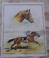 Secretariat, considered by many to be the greatest thoroughbred of all time, is featured in this breathtaking painting by Cathy Rycroft. The star on his forehead was only a sign of the records this chestnut colt would set. The highlight in his illustrious career was undoubtedly winning the Triple Crown in 1973.