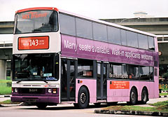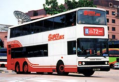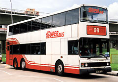1993年,新捷運把利蘭奧林比安空調巴士引進星洲,並冠以"Super Bus"的名字,車身被漆上與眾不同的車隊色彩。 拍攝地點:淡濱尼巴士轉換站 (Tampines Bus Interchange) |