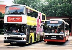 來自英國的利蘭奧林比安,跟來自瑞典的紳佳N113CRB合照;雖然兩者產地各異,但車身都是由蘇格蘭的亞歷山大提供。 拍攝地點:Toa Payoh Bus Interchange |
