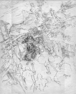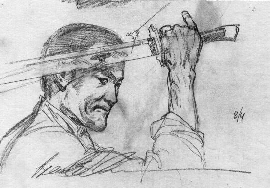 Concrete & Maureen drawing after Lord Leighton, Oakland 2002