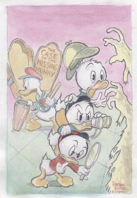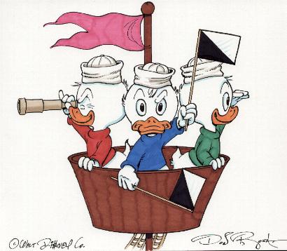 Huey, Dewey, and Louie in crows nest color drawing