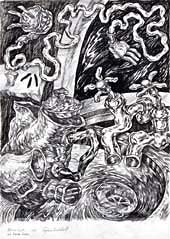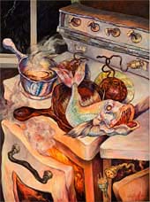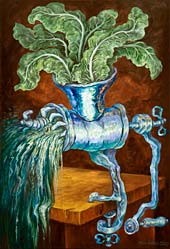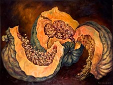 BETWEEN FIRE AND RAIN Sylvia Siddell’s depiction of familiar objects, while surging with energy, refers to the 17th century tradition of Still Life painting with hints of the transitory nature of material goods and the frailty of human existence. Issues of fertility, fecundity, danger and decay are raised in her work as the fire and passion of youth become the drizzle and dilapidation of old age. Below are images from an exhibition of paintings and drawings which was held in March 2008 at the Judith Anderson Gallery, 28 Hastings St, Napier,New Zealand,tel 64 06 8355 607 CLICK ON THE IMAGES FOR HIGHER RESOLUTION PICTURES |
