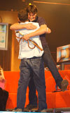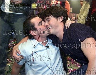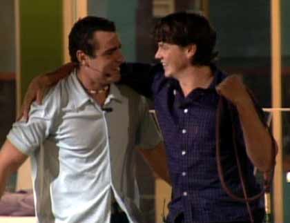 | Big Brother Final Eviction PETER kiss's second placed getter Marty after he was told he (Peter) was the winner Big Brother, Gold Coast |