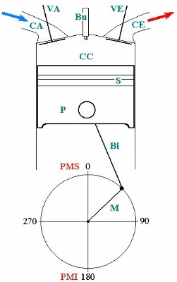 - Motor de 2 tiempos (2T): 1 giro de cigüeñal realiza 1 ciclo.