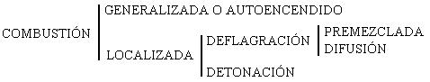- Deflagración: el inicio de la combustión se produce por una elevada temperatura. La velocidad de combustión es menor que la velocidad del sonido.