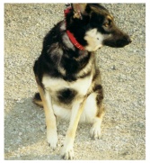I have seen an uncommon variation of the extremely dark two-tone GSD. In this variation, the puppy appears solid black at birth, so far the ones I have seen have all had the anal patch of the marking color common to GSDs that are not solid blacks. This is the only feature that distinguishes these dogs from solid blacks at birth. When this type of bicolor reaches several weeks of age, hairs of the lighter marking color may appear in the eyebrows, inner edge of the ears, across the front of the chest, or in the cheek area. I have only been able to observe a small number of these pups at this time, and am seeking photo and pedigree data on others that may be of this variation. Of the pups observed, some retained the markings, and others have darkened again and then regained the markings at several months of age. These vary from the usual two-tone pattern in that the pups appear black at birth, gain markings, lose them again, and then regain them. Of the ones I have been able to observe, one female at maturity appears to be a black with common shadings in the lower legs, except for her anal patch and a few hairs of marking color that have appeared in her eyebrows at about 21 months of age. Another one at nearly a year of age has slight cheek markings, eyebrow hairs, marking color in the hairs on the inside edges of the ears, a slight "butterfly" marking pattern on the chest, and shadings in the back of the legs (but the leg shadings are no greater than found on some genetic black dogs) and of course, the anal patch.