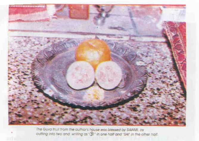 Still I was not satisfied. So I told Swami : "I would do some sort of sadhana like Paramahamsa, and I would prepare sweet diamond cuts (sweets) and offer to You. Kindly confirm your above words, through some proof or evidence." When I counted the sweets, they were eight in numbers like astaakshara. I told myself. "Let me offer this and make my mind strong." After sometime I went into the puja room and counted the sweets. It was only seven in number. Baba had miraculously taken always one sweet. At the same time Vibhuti and saffron were found around padukas and on the altar.