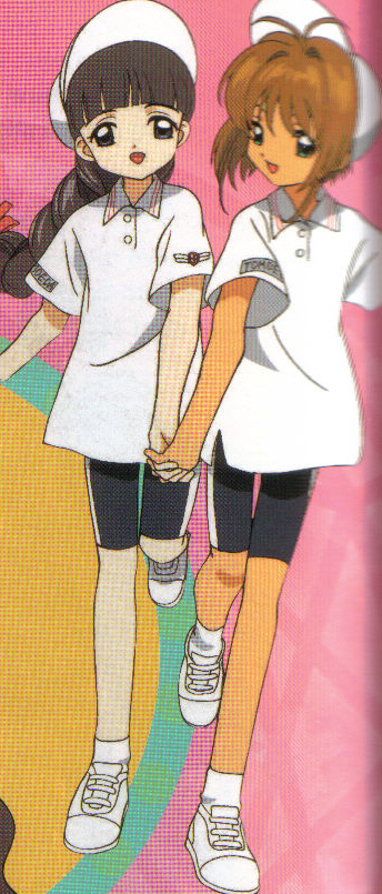 The orange outfit is Sakura's cheer squad uniform and the other is her pratice uniform. The orange one is seen a lot and the other sometimes.