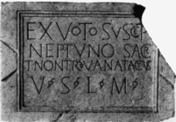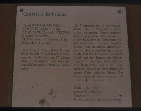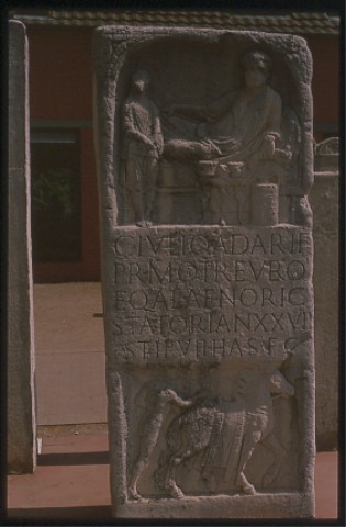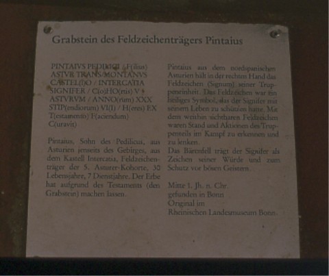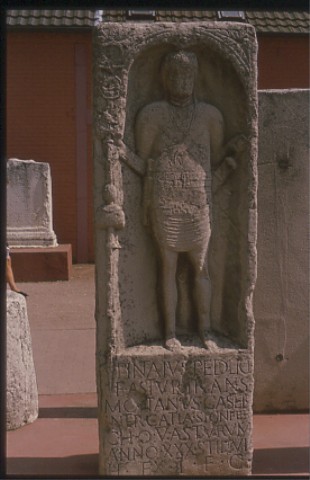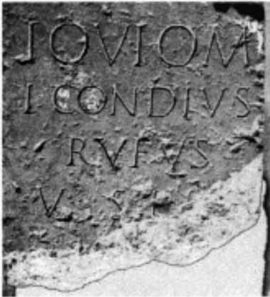 Kleine Inschriftenkunde: Da der Beschreibstoff (Papyrus; Pergament) in der Antike außerordentlich kostbar war, waren schon in der privaten Korrespondenz Abkürzungen üblich: si vales bene est ego exercitusque valent s. v. b. e. e. e. v. konnte etwa die kurze Nachricht eines Offiziers aus dem Felde lauten. Im Fall von Denkmälern, Weihe- und Grabsteinen sind Abkürzungen unerläßlich, denn der Preis richtete sich nach der Zeilenzahl und außerdem steht dem Steinmetzen meist nur eine begrenzte Fläche zur Verfügung. Nach vorsichtigen Schätzungen für das 1.Jhdt.n.Chr. kostete ein mittlerer Grabstein etwa 300 denarii, also mehr als der Jahressold eines Legionärs von 225 denarii. Dazu mußte noch die Summe für den Grabplatz gerechnet werden. Einige der üblichsten Abkürzungen: Dis Manibus Iovi Optimo Maximo IUNONI REGinae Votum Solvit Libens Laetus Merito Hic Sita Est Sit Tibi Terra Levis MILes LEGionis PRAEFectus COHortis