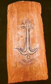 Alpha und Omega sind der erste und der letzte Buchstabe des griechischen Alphabets. Sie sagen aus, daß Christus Anfang und Ende aller Dinge ist. Der Anker ist das Symbol für das Heil, Symbol der Seele, welche glücklich den Hafen der Ewigkeit erreicht hat.