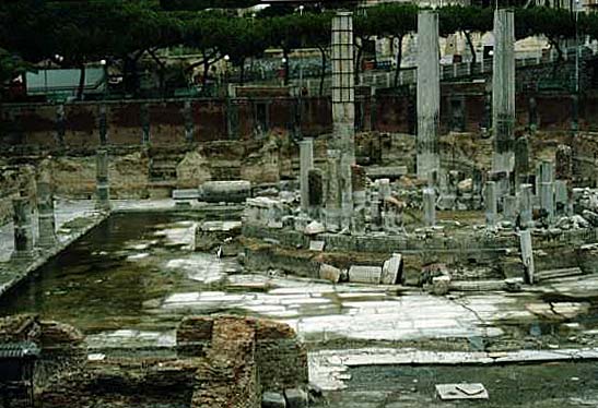 Verkaufsbänke zwischen den Säulen angeordnet.