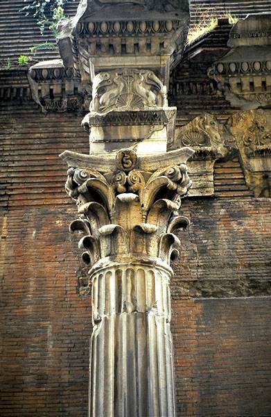 übereinandergesetzten, von Gesimsen getrennten Abschnitten. Die Mauer wird nach