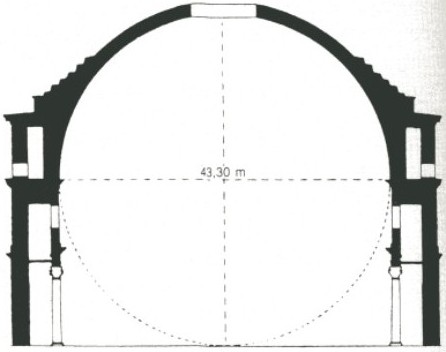 Es ist die größte Kuppel, die je gemauert wurde. Zum Vergleich: Pantheon 43,49