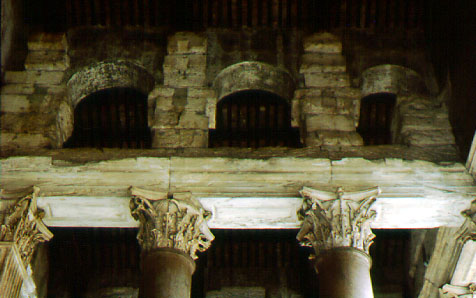 Die zylindrische, 6 m tiefe Mauer, die die Kuppel trägt, besteht aus drei