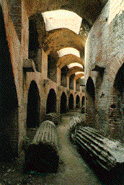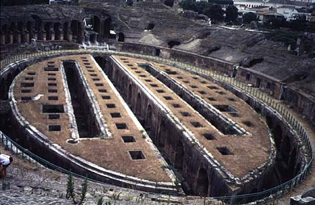 Niveau der Arena, in dem sich die Gladiatoren aufhielten. Über eine weitere