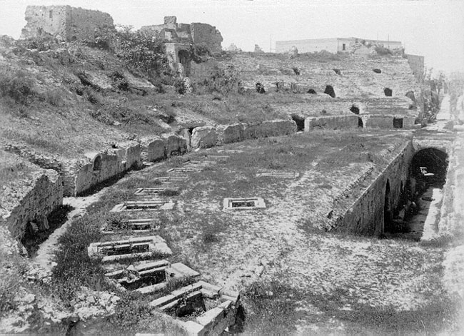 Während der Christenverfolgungen sollen hier i.J. 305der Bischof Ianuarius von Benevent und der Diakon von Puteoli Proculus umgekommen sein, die dann Schutzheilige der Städte Neapel und Pozzuoli wurden. Mit der Zeit wurden im mit Schutt und Erde gefüllten Amphitheater Behausungen errichtet und 1689 auch eine kleine, dem hl.Ianuarius geweihte Kirche; diese wurde1837 abgerissen, als unter Ferdinand II Bourbon Ausgrabungen angeordnet wurden, die sich bis ins nächste Jahrhundert hinziehen sollten. Zwischen 1839 und 1845 legte der Architekt Bonucci einen Großteil des Souterrain, in der dann folgenden Grabungskampagne E. Ruggiero (1850-1855) und G.Fiorelli (1880-1882) die Arena frei. Die Arbeit wurde zwischen 1926 und 1947 von A. Maiuri weitergeführt, dem auch die erste wissenschaftliche Darstellung des Bauwerks zu danken ist.