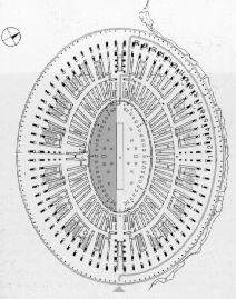 Für die Bewältigung des Zuschauerandrangs war die Führung der Treppen und die Verteilung der Zugänge in der Ellipse entscheidend. Der Haupteingang befand sich im Süden, wo ein Nymphaeum in 15 m Entfernung dem Bau gegenüberlag.