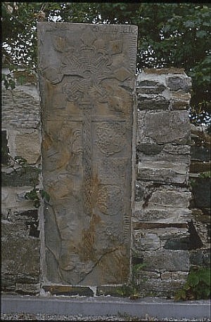 Ein Grabstein (16.Jhdt?) auf dem Friedhof von Doe Castle, County Donegal Neben der künstlerisch sehr gelungenen Umsetzung des Glaubens an ein Weiterleben nach dem Tod (aus dem toten Holz des Kreuzes wächst neues Leben) sieht man deutlich auf der linken Seite verschiedene dämonische Wesen, denen jeweils auf der rechten Seite ornamentale Bandverschlingungen gegenübergestellt sind. Um ein dämonisches Wesen, dem der Tote im Jenseits nicht schutzlos ausgeliefert sein sollte, erfolgreich bannen zu können mußte natürlich der passende Zauberknoten verwendet werden.