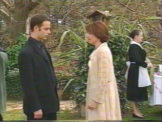 Eulàlia s'acomiada del seu fill Eduard durant el bateig de la petita Mercè Montsolís Solano.