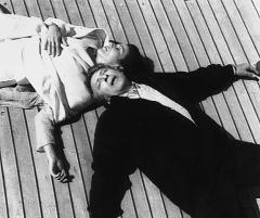 Eulàlia i Mateu inconscients sobre la coberta d'un vaixell en flames.