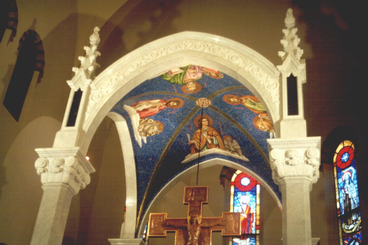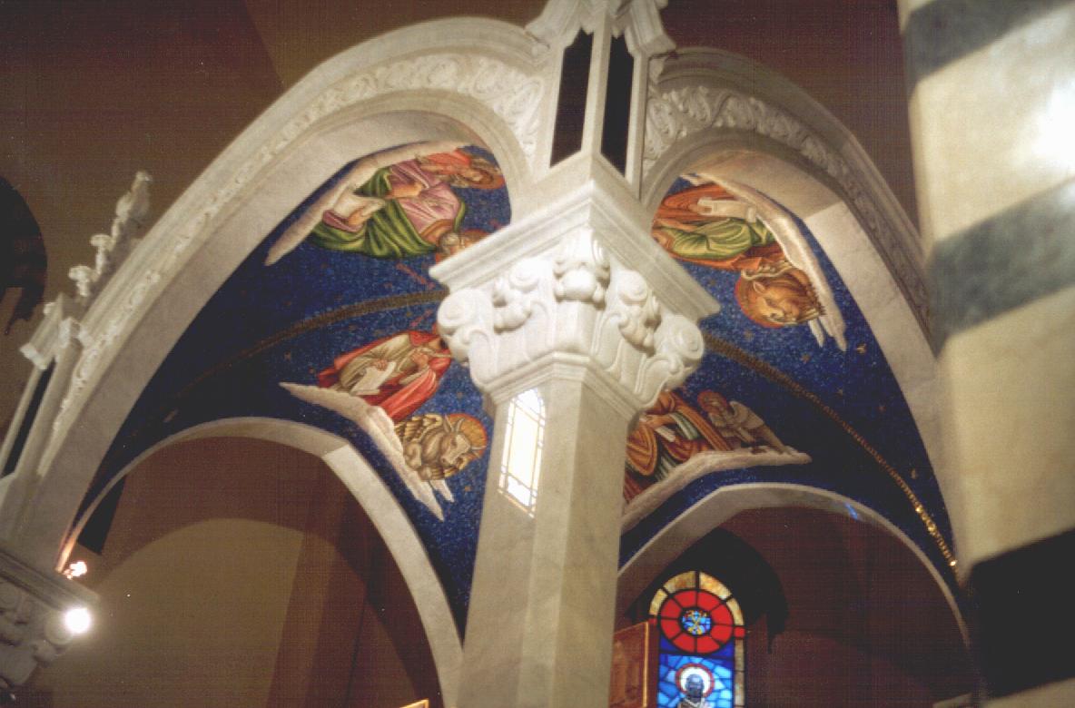 Le volte sono arredate con un mosaico rappresentante i Quattro Evangelisti.