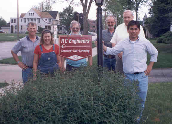 The RC Engineers Staff, from left to right (first picture, above rigth), Jim Partlow, Tom Drone, Carrie, Keni, Gina Furhmman, and Chuck. I am with the staff on the second picture outside of RC Engineers building. |