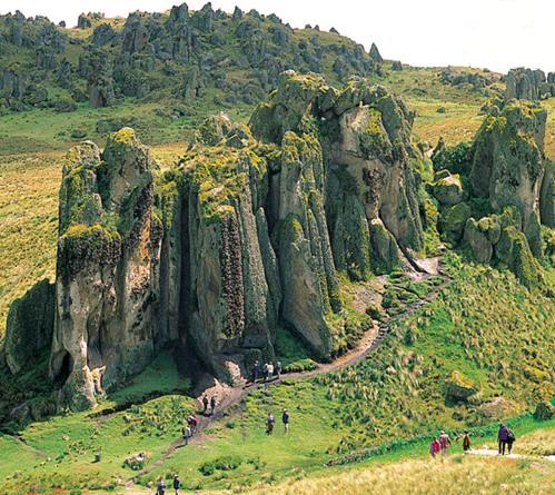 | Descansaron un rato y a un silbato del auxiliar Torres, todos se pusieron de pi� para continuar su marcha, tendr�an que bajar para volver a escalar pasando por la quebrada donde un riachuelo de aguas cristalinas hab�a formado su cauce, cruzar�an al otro extremo saltando de piedra en piedra. As� fue, m�s � menos a la hora prevista llegaron a una meseta que estaba en la parte mas alta, un bosque de farallones de piedra los esperaba, parec�an estatuas de monjes petrificados, el viento silbaba y mov�a el ichu que cubr�a todo, desde all� se apreciaban los canales de irrigaci�n labrados en la piedra, formando figuras geom�tricas para disminuir el caudal de sus aguas. |
