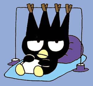 Badtz Maru is a cute, although naughty little Penguin. He lives on the Island of Oahu in Hawaii and has a pet alligator named Pochi. Badtz has a girlfriend named Hana Maru, who is a white seal. Badtz's other friend, Pandaba, is a Panda always wearing a tutu. Badtz Maru likes collecting pictures of movie stars who play bad guys, and when he grows up, he wants to be boss of everything.