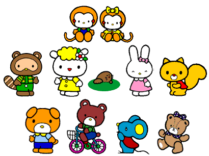 Hello Kitty is Sanrio's first and most popular character! She lives in London, England, with her Mama and Papa, and twin sister Mimi. Kitty enjoys playing outdoors, having tea-parties, and listening to music. Kitty is in 3rd grade. Her friends are Tracy, Joey, Thomas, Fifi, Mory and Rory. They have many adventures together. Kitty loves making new friends. Like she says "You can never have too many friends."