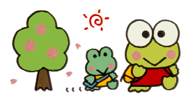Keroppi lives with his brother, sister and parents in a big house on the edge of Donut Pond, the largest and bluest pond around. Most of his best friends live nearby, including his girlfriend, Keroleen. He is the natural leader of his large group of friends, and he leaps to help his pals in their time of need. Keroppi and his friends share his love for playing games, especially baseball and boomerangs. But most often he is seen with his little snail friend, Den Den, always tagging along and usually a little behind.