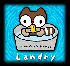 Landry is a cute little boy raccoon who loves to wash everything and anything he can get his hands on. His best friend is a rubber ducky named "Pea" who understands everything Landry is thinking. Besides washing things, Landry's hobbies include dancing and running on top of his tub, sliding, taking Pea for walks, and listening to music, especially Motzart. When he dances on his tub, Pea gets very excited. Landry also loves to eat. He likes donuts, sausages, nuts and ice-cream, but chocolate is his very favorite. When he's surprised you'll often find him hiding under his tub with his striped, mink-like tale sticking out.