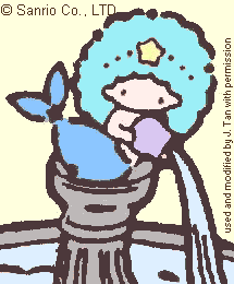 No official info on this character as yet. She reminds me of Lala, the girl from the Little Twin Stars, and I think I know why. A while ago I found a very early picture of Lala posing as a mermaid for the star sign Pisces along with the rest of the horoscope signs. See the picture here. I think Sanrio must have liked that picture therefore created a new character out of it.