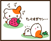 Puchi Puchi Wanko loves strawberries (although too many make him sleepy) and his favorite saying is "a small thing is a good thing!"