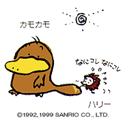 Kamo Kamo the platypus, and Harry the spiny anteater, are best friends. Kamo Kamo is a quiet sort, living life at his own pace. His pet phrase is "Kamo-ne" (which means "perhaps" in Japanese). Harry, on the other hand, is full of curiosity. He may be small, but he's strong!