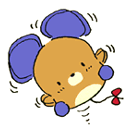 Born in the flower garden at Sanrio Puroland, Picke Bicke claims to be 100% mouse, but he cannot help mimicking the other animals he plays with. He can hop like a frog and most amazingly, he can use his large ears to fly like a butterfly, well, not as high of course, just a few inches off the ground.