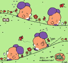 You can easily pick this cute little guy out of a crowd: he's one with the buzz-cut, t-shirt, short pants, and the tummy ache... tummy ache? Well, you see, he was trying for the lucky popsicle prize, but every time he licked down to the stick, there was that phrase printed on the shaft: "Sorry, try again." So, he kept trying again, and again, and again... maybe a little too much... OK, so he's got tummy troubles, and sure, he's a little silly, but hey--he's got a winner smile.. and maybe he'll actually win a prize someday.