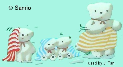 No official info on these characters as yet. They were found in a flash presentation at www.sanriowave.com. Their names are (from left to right) Hobaa, Buruburu, Oren, Remoremo and Pinki. These guys are just so CUTE!