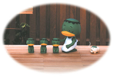 These three little kappas are being trained and looked after by their older sibling. When they are not in training, they love to eat their favorite food; cucumbers!