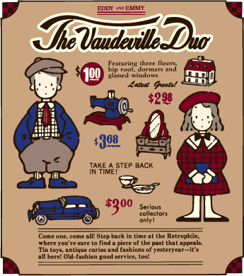 Young Eddy aspires to be a stage director someday. In the meantime, he generally likes to get into mischief or go off exploring. Emmy, Eddy's closest friend from childhood, dreams of becoming a famous actress on Broadway. Cute and precocious, she's sure to be a hit!