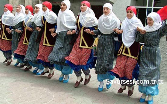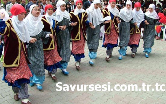 | HALK OYUNLARI Halk oyunları (dansları) günümüzde de toplumsal yaşantıyı etkileyen önemli bir etkinliktir. Halk oyunlarının kökeni insanlık tarihi kadar eskidir. İlkel insanların topluluk halinde yaşaması ve kendilerini yöneten bir takım sihirli güçlere tapmaya başlaması ilk dansın doğuşuna neden oldu. Yöremizdeki halk oyunlarının figürleri incelendiğinde bu toplumlarda yaşayan medeniyetlerin kültürel yapısı açıkça ortaya çıkar. Mardin halk oyunları, düğünlerde, bayramlarda, özel günlerde ve her türlü törenlerde oynanır. Düğün törenlerinde törene katılanlar belli yerlerde toplanırlar. Bu yer, nişan için kız evi, düğün için erkek evidir. Törenin yapılacağı yere gelen konuklar karşılanır, ağırlanır ve tören bitiminde uğurlanır. Karşılama, ağırlama ve uğurlama törenlerinde oynanan halk oyunları ayrıdır. Karşılama, oyunun akışının hızla başlayıp yine aynı hızla biten oyundur. Ağırlama, ağır bir tavırla yavaş hareketlerle oynanan bir oyundur. Uğurlamada oyunlar yavaş başlayıp hızla biter. Oyunlar seyirci karşısında oynanır. Oyunun oynandığı ortam bazen bir evin avlusu, bazen bir oda bazen de bir düğün salonu olabilir. Ekip başı oyunu yönetir, komutlarıyla oyuncuları yönlendirir. Oyunlar genelde türkülüdür. Günümüzde; davul, zurna, klarnet, tulum, tef, tepsi, kaval, dilsiz kaval, erbana, kabak kemençe, şehir merkezinde, cümbüş, darbuka, zilli tef, bağlama ve koto eşliğinde oynanır. Halk oyunları düğün, nişan, kına, bayram, asker uğurlama, toplantılar ve törenlerde oynanır. Köylerde oynanan halk oyunları genellikle özel günlerde oynandığı için bayramlık tabir edilen en yeni, temiz, bazen de "Sandıktan" tabir edilen giysiler giyilerek oynanır. Halk oyunları oynandığı zaman, iyi bilenler gruba katılınca diğerleri çekilir ve bunları seyre başlar. Mardin halk oyunlarında kültürü oluşturan özelikler sadece güzel sanatların dallarının birer göstergesi değil, yaşamın ta kendisidir. |