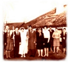 ![]() 1948. Nunta in Negrea. Pe fundal, casa acoperita cu stuf |